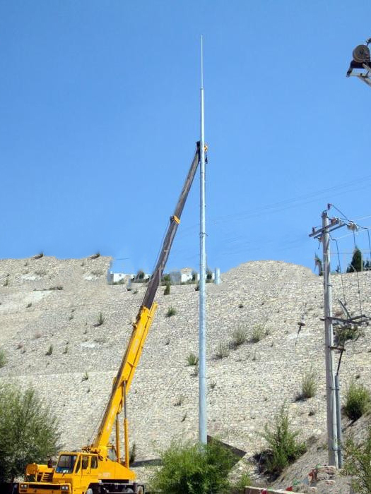 將避雷針的各段首尾連接(法蘭連接或插接法),固定在預(yù)埋的基礎(chǔ)底座上。(有些配件需要工程商根據(jù)實際情況加工)可以人工安裝也可以機械吊裝。
