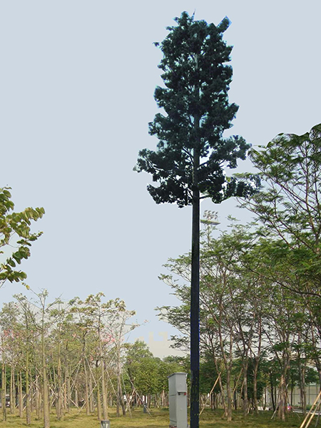 仿生樹,又叫仿生塔、仿生通訊塔,屬于通信發(fā)射塔技術(shù)領(lǐng)域。是讓通信鐵塔與周圍的自然環(huán)境相協(xié)調(diào),有效地解決了風(fēng)景區(qū)等地建站難的問題,其優(yōu)點是保持了原有單管塔的所有優(yōu)點,在其外形上作了重大的突破、改進,以自然生長的松樹,樟樹等為仿真的造型樣本,設(shè)計素描圖和電腦效果圖,制訂雕塑和噴涂工藝程序,對單管塔仿真?zhèn)窝b,使人們察覺不到塔的存在,把它融入了周圍的自然環(huán)境中。